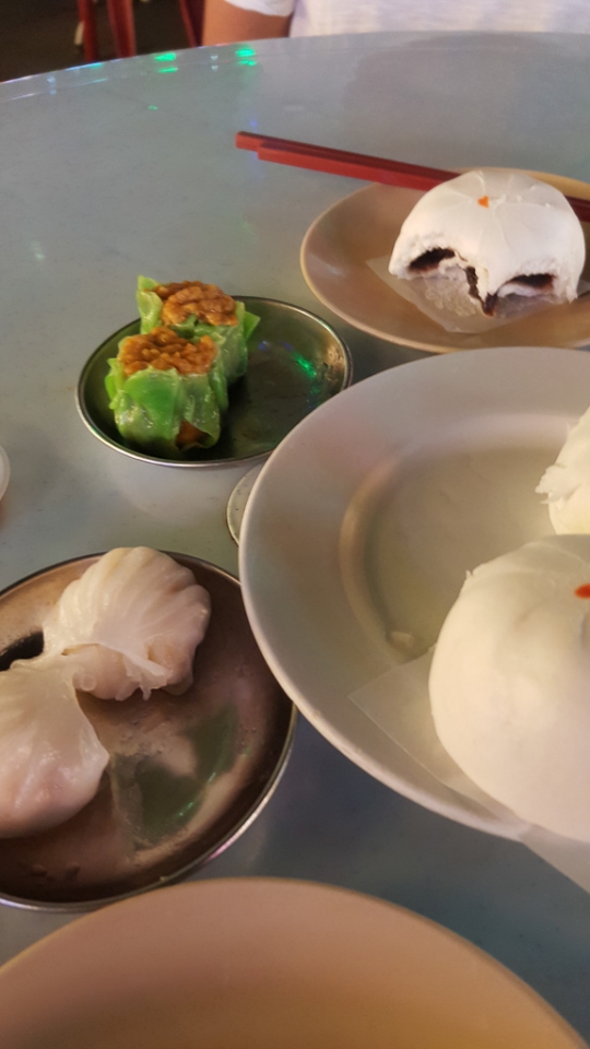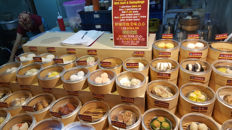 Zum Glück fanden wir gleich in der Nähe einen chinesischen Restaurant-Familienbetrieb wo sogar – für malayische Verhältnisse – das Bier leistbar war. Neben allerlei Nudel- Reis- und Stir-fried Gerichten (Pfannengerührtes in der Diktion unserer Lieblingsnachbarn) wurde aber auch von der Mama?/Oma?/Uroma? des Lokals ein mobiler Dampfgar-Wagen durchs Lokal geschoben, wo es Dim-Sum (siehe: https://de.wikipedia.org/wiki/Dim_Sum), Wan-Tan (https://de.wikipedia.org/wiki/Wan_Tan) und süße Bun’s (zb: http://www.chinasichuanfood.com/homemade-red-bean-buns/) frisch gedämpft zum Aussuchen gab.