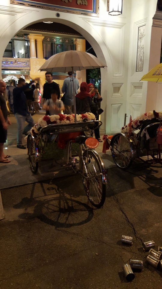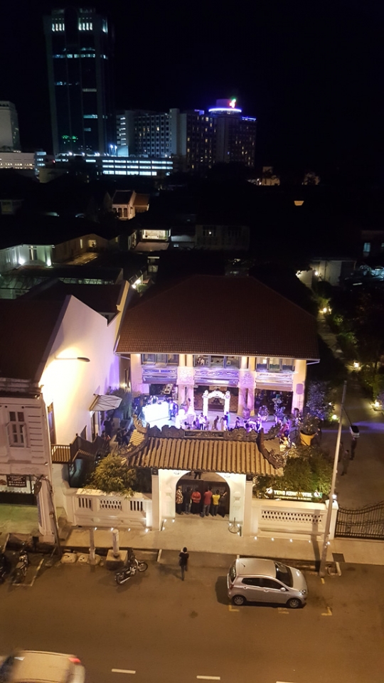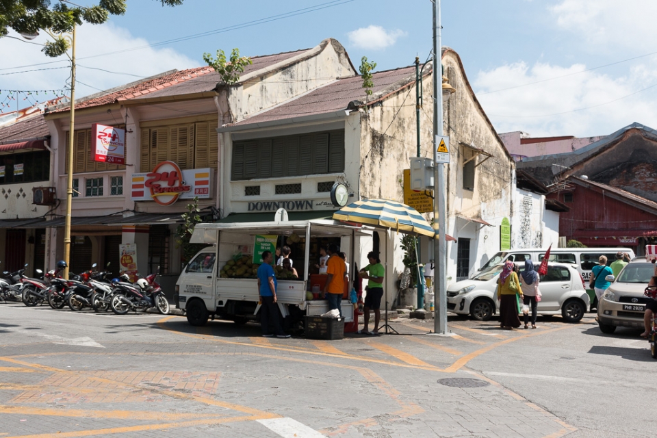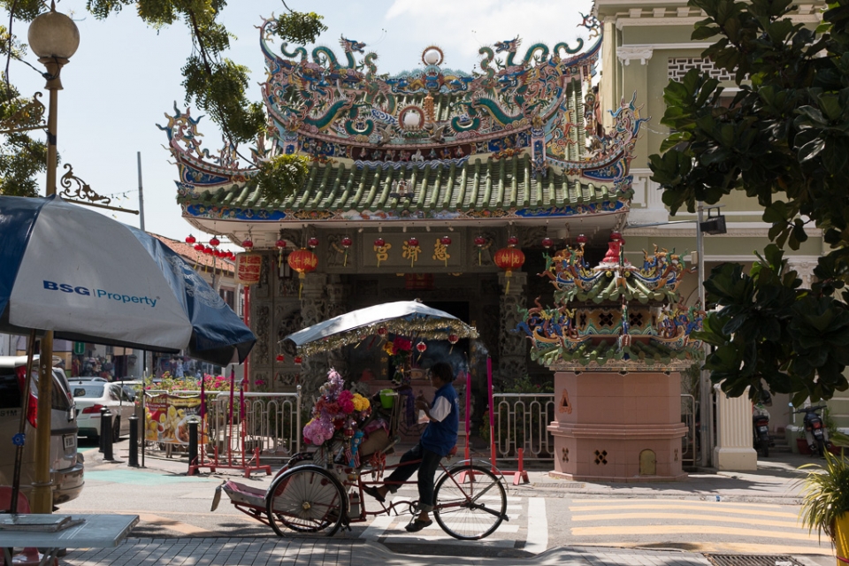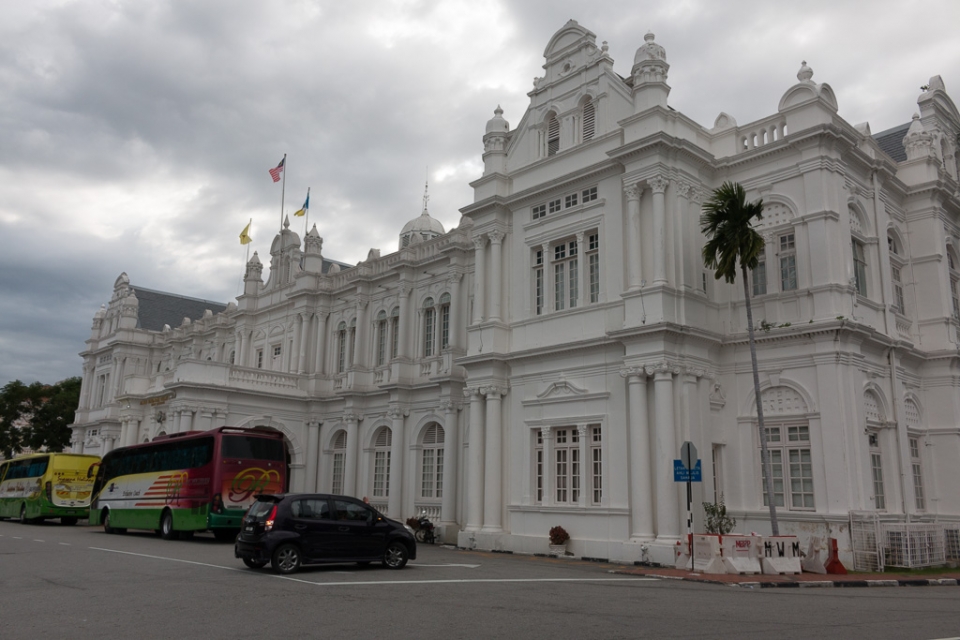 Wir landeten auf einem Busbahnhof, 15 km vom Zentrum Georgetowns entfernt und mit dem Taxi waren wir dann überraschend schnell bei unserem Hotel mitten im Weltkulturerbe-Zentrum. Dort angekommen, wurde schon der angekündigte Mix der Kulturen deutlich: rechts vom Hotel eine chinesische Pagode, links vom Hotel eine Moschee. Das kleine Fenster in unserem Zimmer hatte eine Doppelverglasung und die war ein Segen (göttlich?), vor allem wenn frühmorgens lautstark quasi direkt unter unserem Bett zum Gebet gerufen wurde.