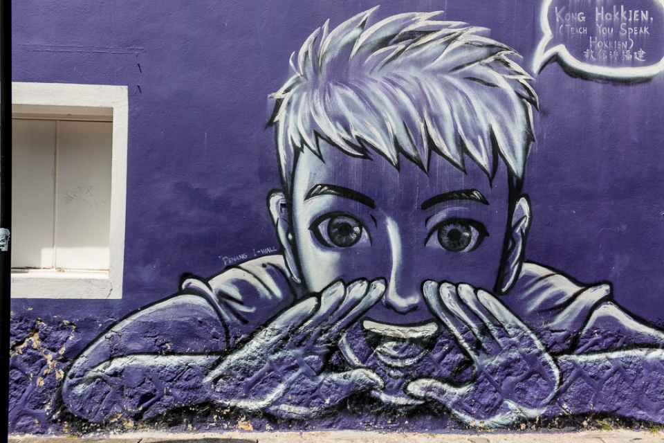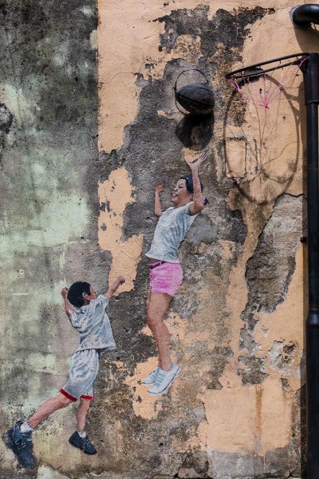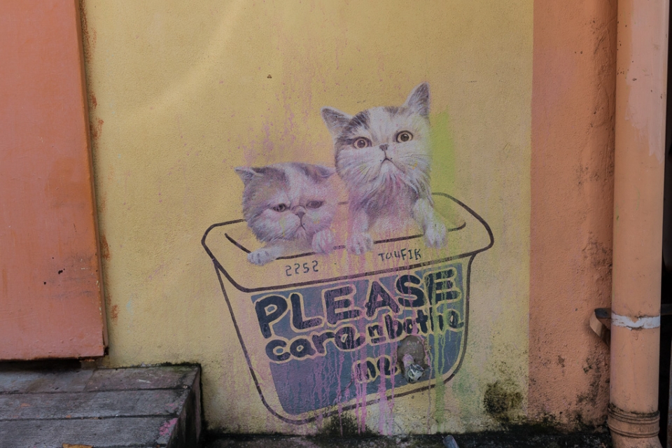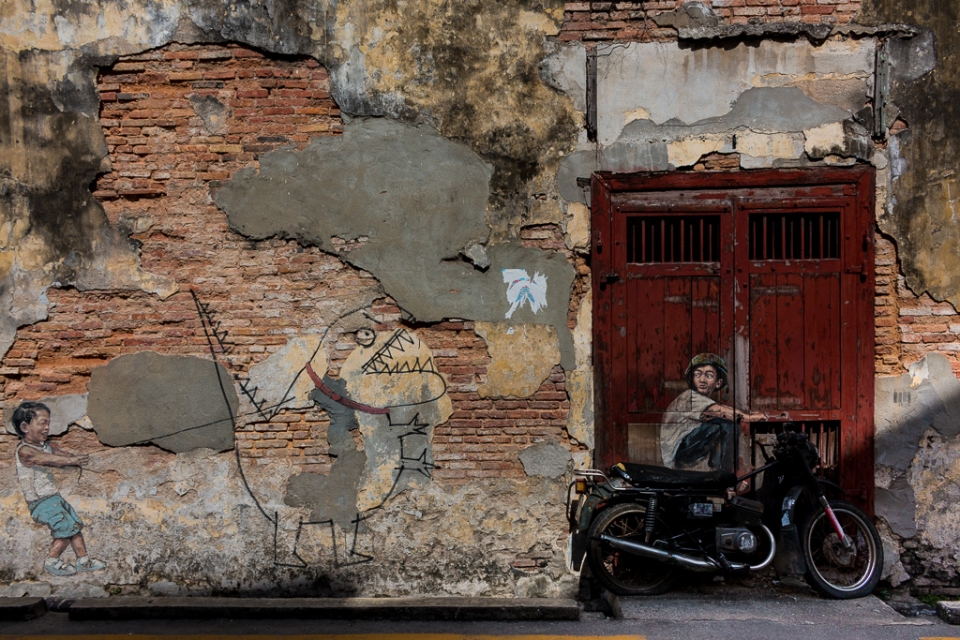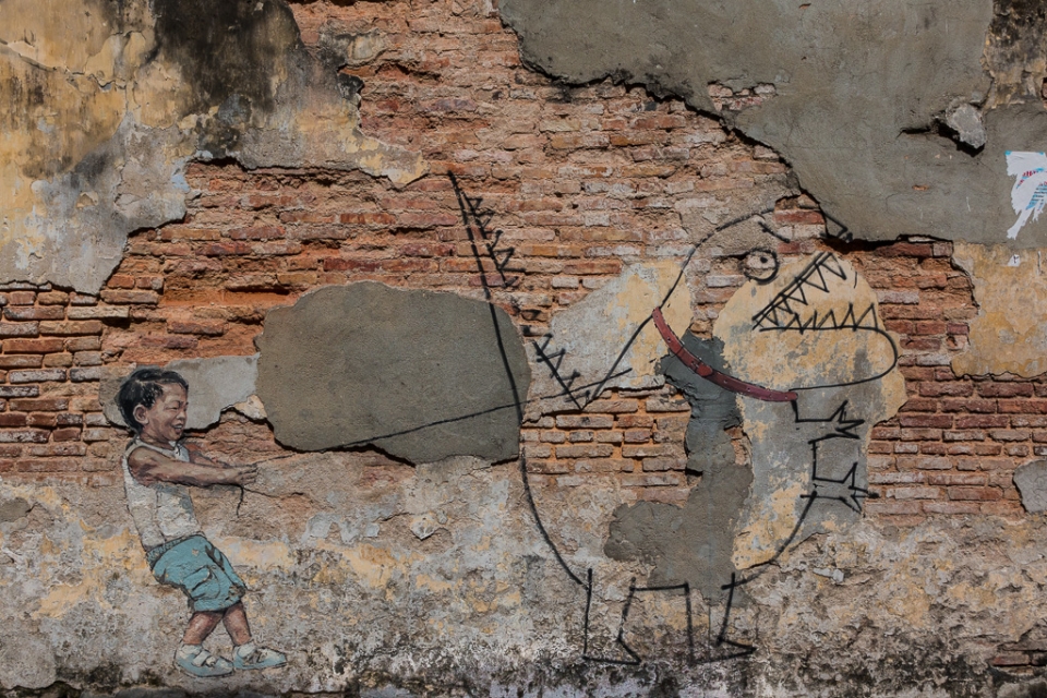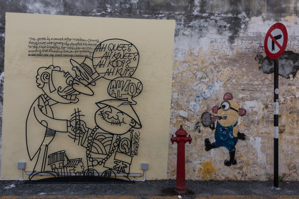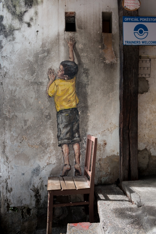 Besonderes Highlight sind die Straßen-Kunstwerke: 2012 wurde der littauische (!!!) Künstler Ernest Zacharevic beauftragt, die historischen Mauern einiger Gebäude im Zuge des Georgetown Festivals zu verschönern. (Mehr tolle Projekte auf seiner Homepage).