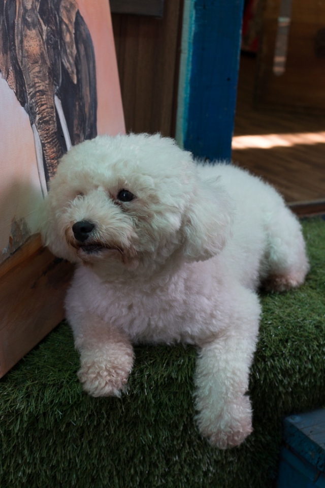 Nicht bei jedem Gericht weiß der ahnungslose Europäer, was alles drinnen ist: Beim kantonesischen gebratenen Reis, waren neben Shrimps auch ganz kleine rote Würfelchen drinnen. Wir haben den chinesischen Wirt gefragt, was das ist, er sagte „Schweinefleisch“. Zitat Joachim: „Ist dir eigentlich aufgefallen, dass es hier im Gegensatz zu Thailand weder streunende Hunde noch Kakerlaken gibt?“ Bei den Hunden können wir Entwarnung geben: Zumindest Pudel haben wir getroffen 🙂
