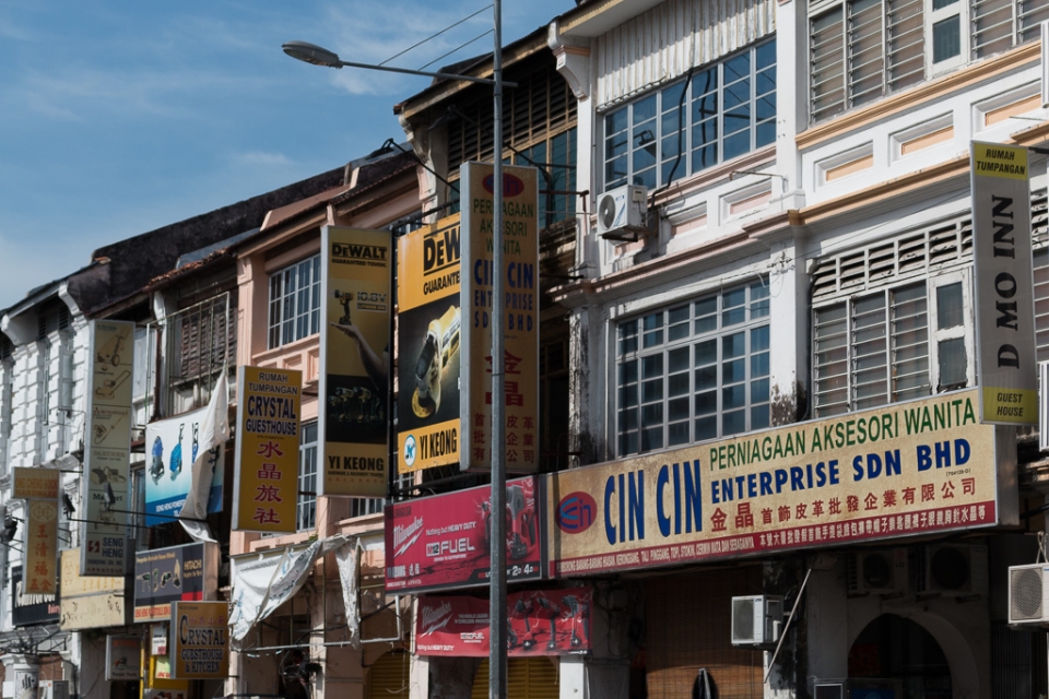 Märkte mit einem Angebot von muslimischer Kleidung bis zu FlipFlops, Bausünden moderner „Architektur“ neben historischen Bauten, Pfahlhäuser der ersten chinesischen Einwanderer ins Meer hineingebaut, alte chinesische Clan-Häuser, moderne Hotelburgen, Shoppingmalls und Street-Food-Stände und Backpacker-Quartiere.