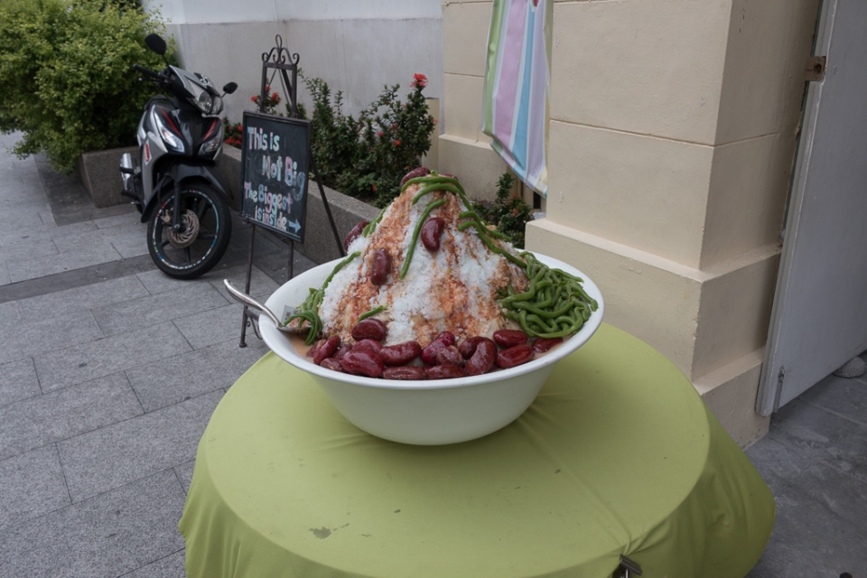 Georgetown soll laut Reiseführer die Essenshauptstadt Südostasiens sein, da es aus allen Regionen Spezialitäten gibt und vor allem die Essensstandeln auf der Straße keinesfalls versäumt werden dürfen. Also gleich am ersten Abend hin zu den Ständen: Dort raucht der Wok, und vor jedem Standel stellt sich eine Schlange von Menschen an. Das blöde daran: man kann sich eigentlich nirgendwo gemütlich hinsetzen um zu Abend zu essen, sondern es ist in erster Linie heiß und irgendwie hektisch. Auf jeden Fall nicht das Richtige nach einer siebenstündigen Busfahrt.