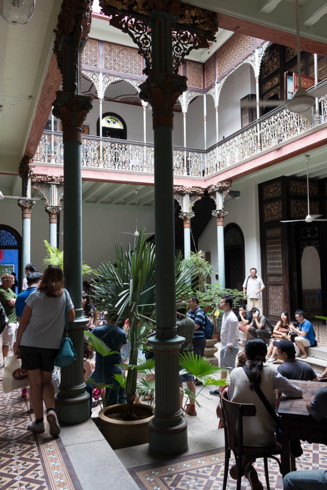 Da wir gerade zufällig bei einem alten chinesischen Clan-Haus (Wohnhaus reicher chinesischer Einwanderer) vorbeikamen, als eine Führung stattfand, sind wir gleich mit hinein. Eine illustre ältere Chinesin erzählte uns daraufhin eine dreiviertel Stunde lang im Foyer des Hauses die gesamte Lebensgeschichte des Erbauers und die Prinzipien des Fengh Shui, danach über die langwierige Restaurierung des durch die Nachkommen des Erbauers völlig verwahrlosten Hauses. Ach ja, hineinschauen durften wir auch ein bisserl 🙂