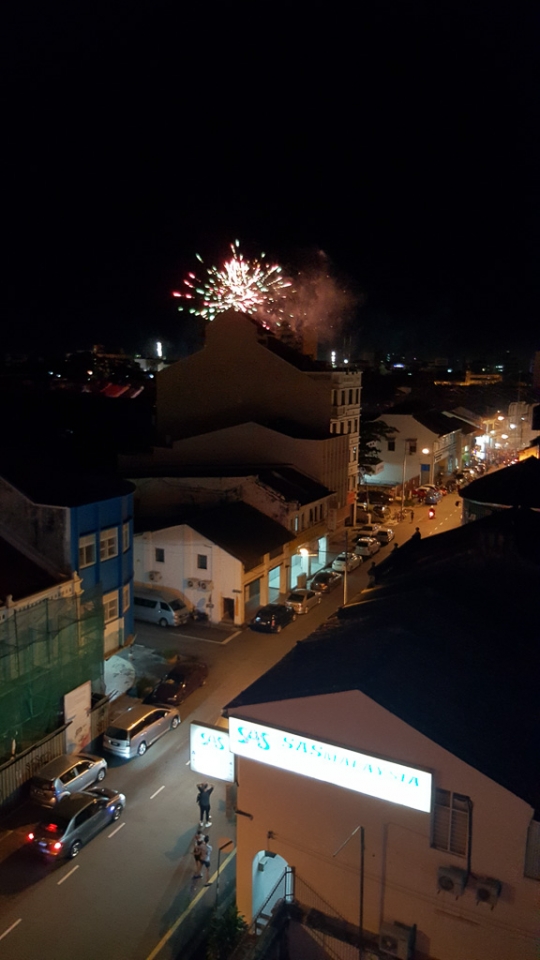 Zum Glück hatte unser nettes Hotel „Chulia Mansion“ eine Roof-Top-Bar und so beschlossen wir dort auf das neue Jahr anzustoßen. Es gab Rotwein und sogar ein paar Raketen konnten gesichtet werden. Liebe Silvia, es war also so fast so wie letztes Jahr bei dir in Unterpremstätten, nur wärmer und ihr habt uns gefehlt 🙂