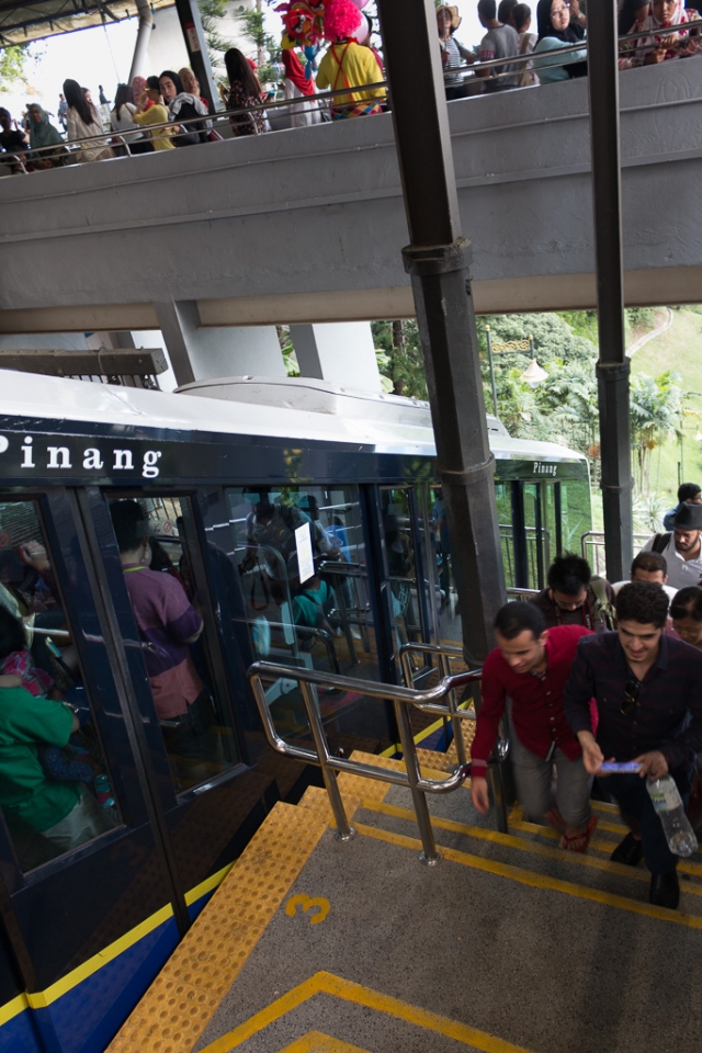 Und weil wir ja Land und Leute kennelernen möchten, durfte auch eine Fahrt mit der Standseilbahn (wie die Schloßbergbahn!!!) auf den Penang Hill, das Hauptausflugsziel malayischer Familien nicht fehlen. Anstellen sind wir ja eh schon gewohnt…